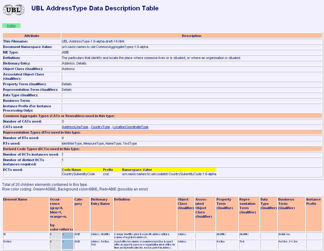 The method for validating against enumerated code lists described in this document has not been implemented in UBL 1.0 Beta. This work is under review by the UBL Code List Subcommittee but is not expected to impact document instances created with the current schemas.