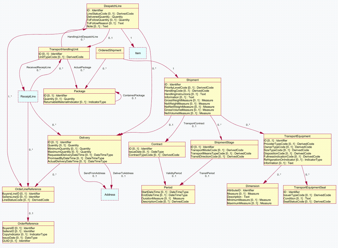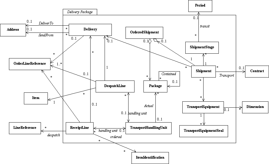 Certain components in the library participate in a nesting that may result in recursion. For example, a Package may contain other Packages, a Delivery may specify another Delivery, etc. This is a legitimate business construct. In any implementation these would be constrained by some degree of limitation to the depth of recursion. We cannot describe this constraint in the schema. Therefore, it is theoretically possible to create unbounded document instances where these structures are used. Implementors should be aware of this and may wish to guard against this in their applications.